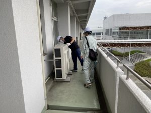 本工事は大分商業高校と芸術緑ヶ丘高校の2校を対象にした工事の為、移動時間も含め時間がかかりました