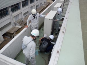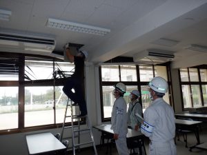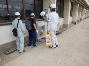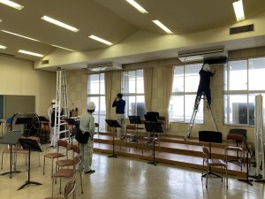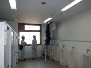 本工事は大分商業高校と芸術緑ヶ丘高校の2校を対象にした工事の為、移動時間も含め時間がかかりました
