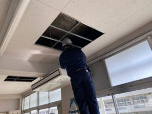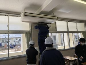 本工事は上野丘高校の普通教室棟33教室の空調機更新工事です