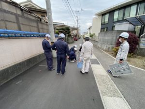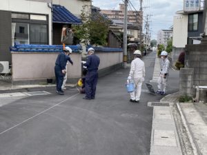 狭い市道での工事で且つ下水道工事の工程に合わすため厳しい工事調整の中でありましたが無事終了いたしました。