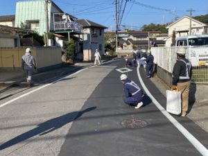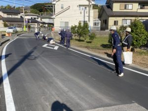 11月14日大分市上下水道局発注「市道加納滝尾中学校線歩道改築工事に伴う配水管布設替工事」の完成検査を行いました